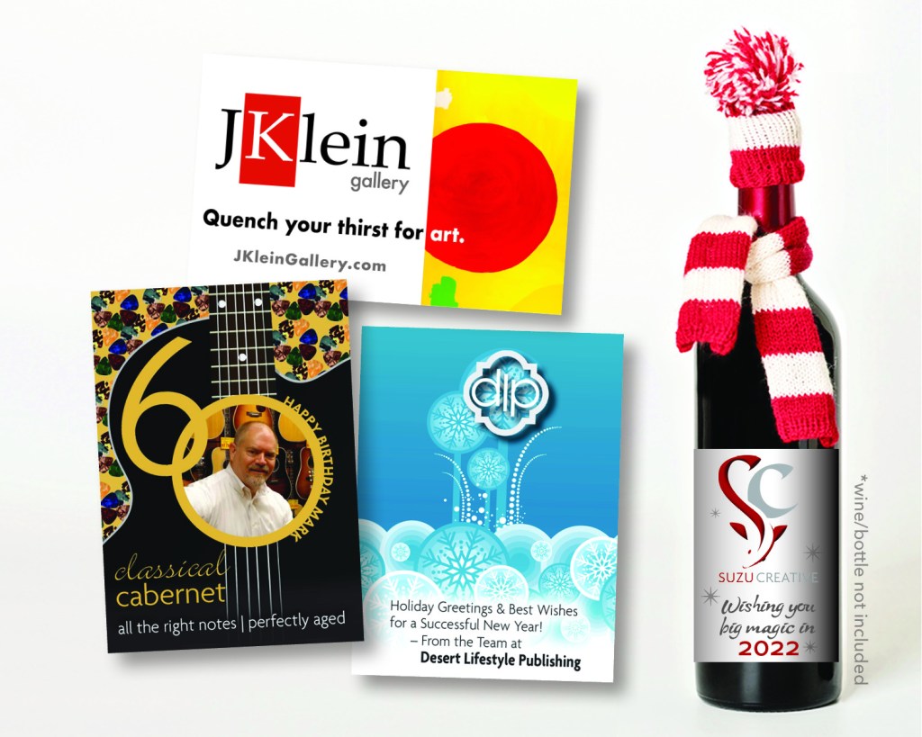 Raise a glass to your favorite hostess or client this year with a distinctive, custom wine label from Suzu Creative. Personalize with your name or business, or celebrate someone with wishes unique to them. The thoughtfulness will hit all the right notes.